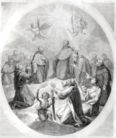 Salió para el lugar del martirio habiendo dejado sus armas, vestido con traje de fiesta; se arrodilló sobre una estera de paja ante una imagen pequeña del descendimiento de la cruz, que luego metió en su pecho, mientras enrollaba en su mano derecha el rosario.