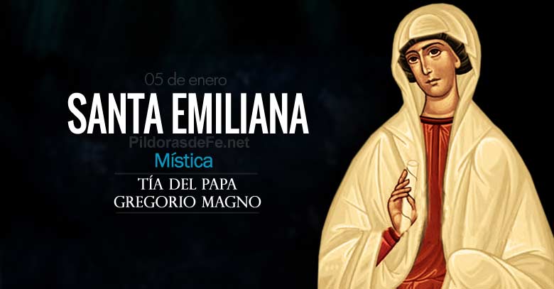 Santa Emiliana fue una mística religiosa que fue la tía del Papa San Gregorio Magno. Ella y una hermana, Tharsilla, vivían en Roma, en la casa de su hermano, el padre de Gregorio, practicando la oración continua y una gran austeridad. Santa Emiliana murió el 5 de enero, solo unos días después de Tharsilla.