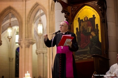 Madrid. Infomadrid, 08-11-2014.- Miles de jóvenes han asistido esta noche a la Vigilia de Oración que ha presidido el Arzobispo de Madrid, Mons. Carlos Osoro Sierra, en la Catedral de Santa María la Real de la Almudena, en la Vigilia de la festividad de la Patrona de la diócesis. Ha estado acompañado por los Obispos auxiliares Mons. César Franco y Mons. Fidel Herráez, y por numerosos sacerdotes que han administrado el sacramento de la confesión.